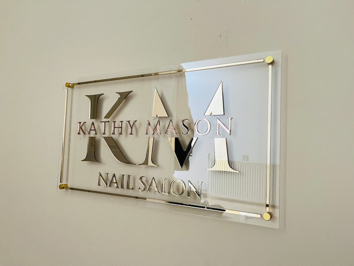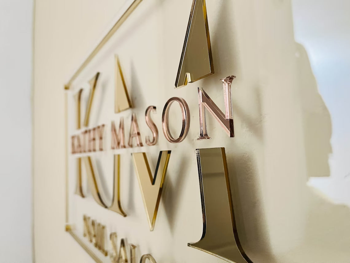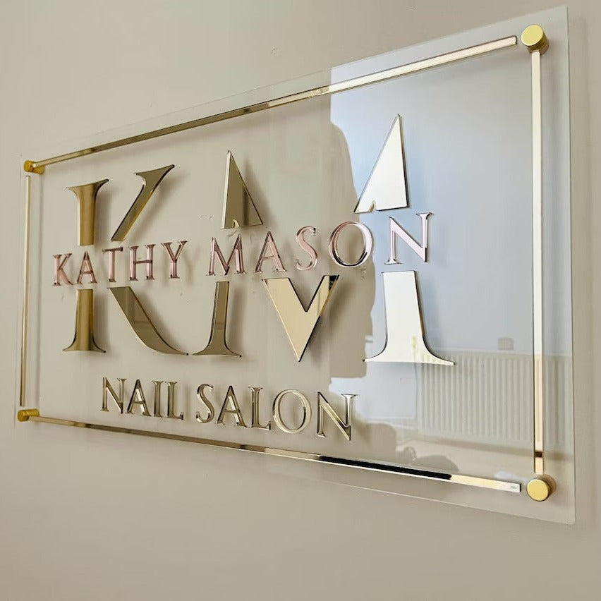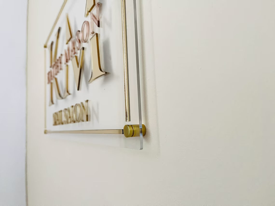 Améliorez l'image professionnelle de votre clinique de beauté avec notre enseigne rectangulaire sur mesure, dotée d'un superbe acrylique or rose.